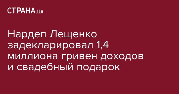Любопытно, что за 2014 год Лещенко задекларировал 1,3 млн гривен доходов, за 2015 год - 204 тыс. гривен, а за 2016 год - 4,5 млн гривен.