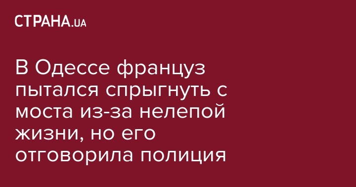 В Одессе 25-летний гражданин Франции пытался спрыгнуть с городского моста вечером 1 апреля. Самоубийцу увидели прохожие, которые обратились к правоохранителям. Об этом сообщает пресс-служба полиции Одесской области.