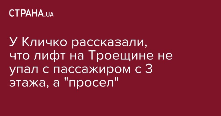В воскресенье 1 апреля в Деснянском районе Киева оборвался лифт в подъезде одной из местных многоэтажек, кабина сорвалась с высоты 3 этажа. Впрочем, в КГГА пояснили, что лифт не падал, а "немного просел".