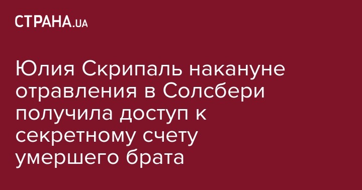 Юлия Скрипаль накануне отравления в Солсбери получила доступ к секретному счету умершего брата