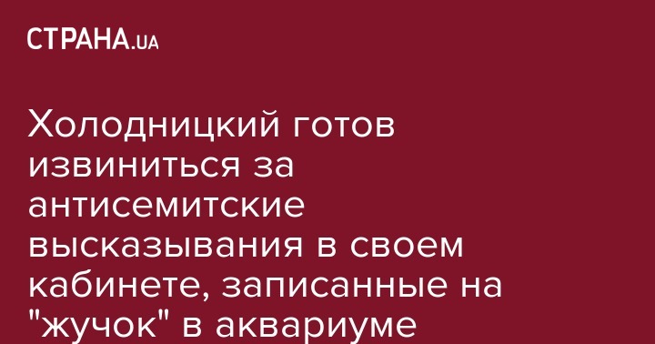Заместитель генпрокурора - глава Специализированной антикоррупционной прокуратуры (САП) Назар Холодницкий готов публично извиниться за возможные антисемитские высказывания в своем кабинете. Об этом он сказал в интервью изданию "Украинская правда".
