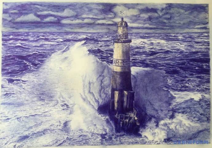 На обратной стороне рисунка маяка Сущенко указал, что он расположен на скале Ар-Мен, а моряки его называют "Ад Адов".