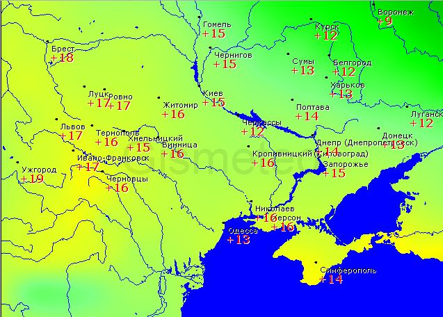 Теплее всего будет на западе страны – к примеру, в Ужгороде около +19, прохладнее на востоке – там днем ожидается плюс 12-14 градусов. Таковы данные сайта Gismeteo.