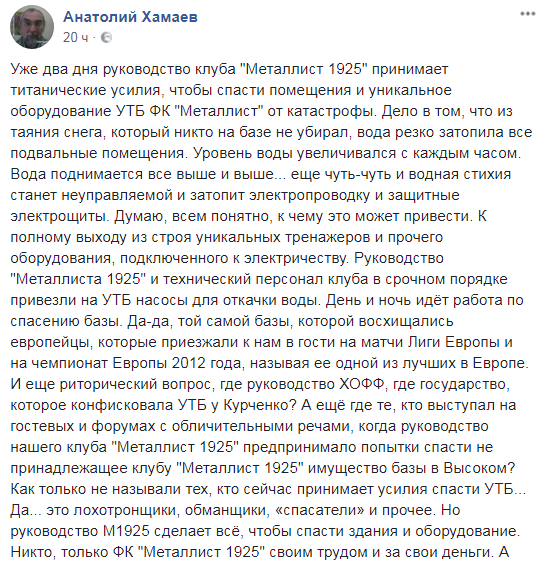 Об этом на своей Facebook-странице сообщил сотрудник клуба Анатолий Хамаев.