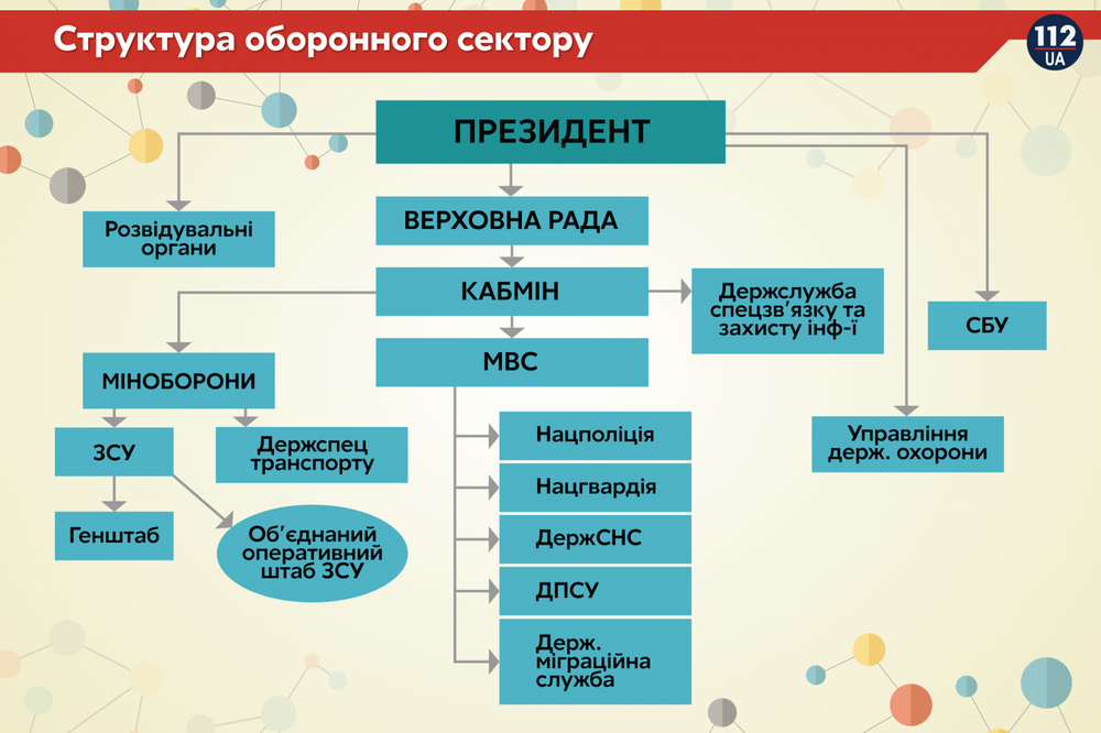 В законопроекте предусмотрено, каким образом будут координироваться и подчиняться силы безопасности и обороны. В частности, президент как верховный главнокомандующий руководит всеми силами безопасности и обороны. Он объявляет войну и вводит военное или чрезвычайное положение, принимает решение о всеобщей или частичной мобилизации, издает приказы, директивы по вопросам обороны, возглавляет Совет национальной безопасности и обороны, назначает и освобождает секретаря СНБО и его заместителей, назначает/освобождает высшее командование ВСУ (по рекомендациям главнокомандующего).