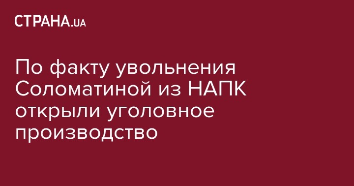 Печерское управление полиции Киева открыло уголовное производство по факту незаконного освобождения Анны Соломатиной с должности руководителя Департамента финансового контроля и мониторинга образа жизни НАПК. Об этом на своей странице в Facebook сообщила организация Transparency International.