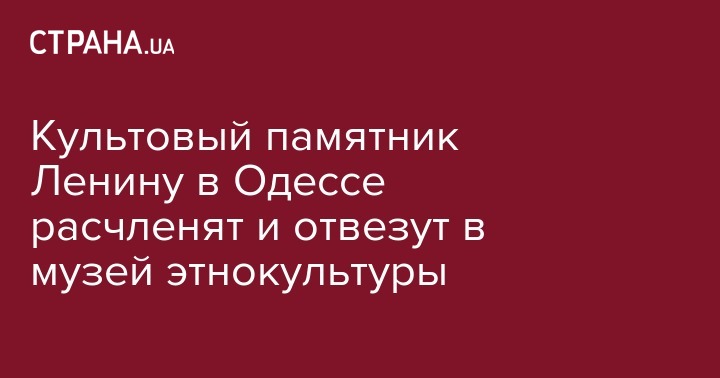 Последний памятник Ленину в Одессе, который во вторник, 17 мая, обещают полностью демонтировать в парке Савицкого, разберут на части и отвезут в Татарбунарский район в музей этнокультуры. Об этом сообщила "Стране" пресс-секретарь Одесского городского совета Наталья Мальцева.
