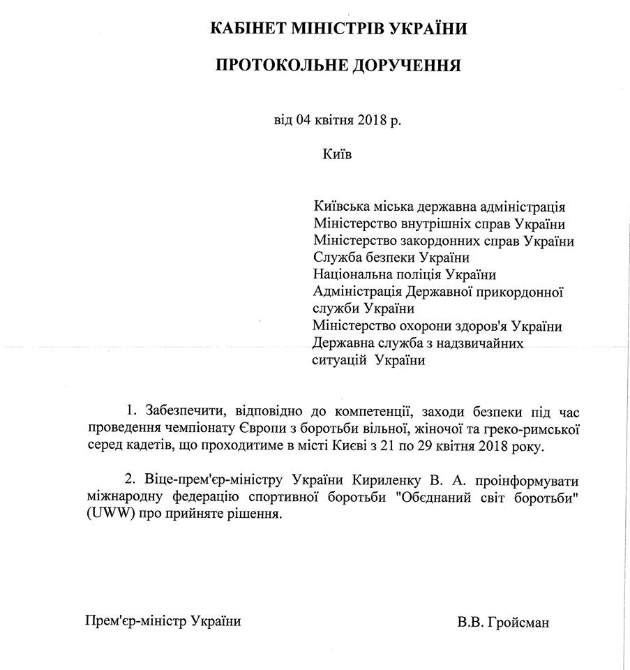 В частности, отметил министр, 5 марта в администрации Президента Украины состоялась встреча с делегацией UWW, которая затем также встретилась с вице-премьер-министром Вячеславом Кириленко.
