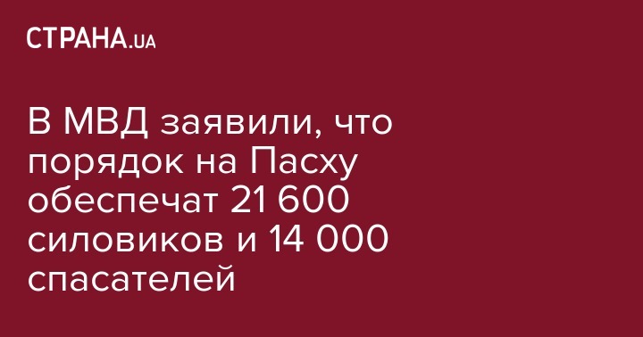 "Все подразделения МВД, в частности Нацполиция, Нацгвардия, Госслужба по чрезвычайным ситуациям и Госпогранслужба полностью готовы обеспечить правопорядок в городах и селах во время Пасхи. В праздничную ночь к охране общественного порядка и безопасности граждан будут привлечены 21,6 тыс. правоохранителей. Среди них - тысяча военнослужащих Национальной гвардии", - сообщил Яровой.