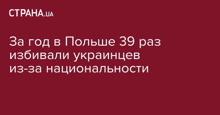 В течение 2017 года в Польше правоохранители зарегистрировали 39 случаев нападений на граждан Украины на почве национальной нетерпимости. Об этом сообщили в посольстве Украины в Польше, передает УНН.