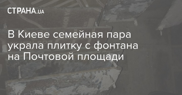 В пятницу, 6 апреля, на Почтовой площади в Киеве семейная пара похитила плитку со скульптурной композиции. Убежать им помешали правоохранители сразу после совершения преступления.