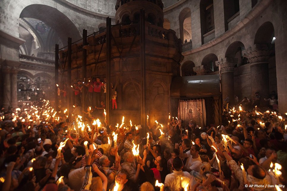 Тысячи паломников со всего света прибыли в Храм Господний, чтобы получить себе частичку Благодатного огня.