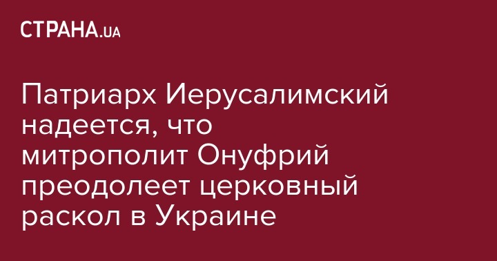 Патриарх Иерусалимский Феофил ІІІ надеется, что глава УПЦ МП митрополит Онуфрий преодолеет церковный раскол в Украине. Об этом сообщает сайт УПЦ.