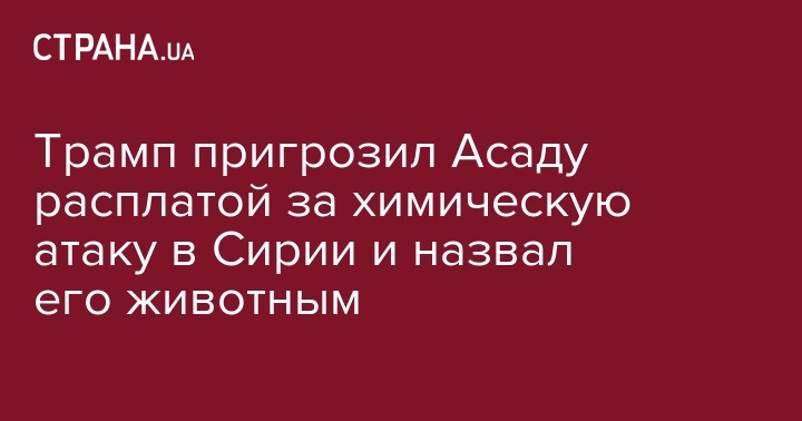 Трамп пригрозил Асаду расплатой за химическую атаку в Сирии и назвал его животным