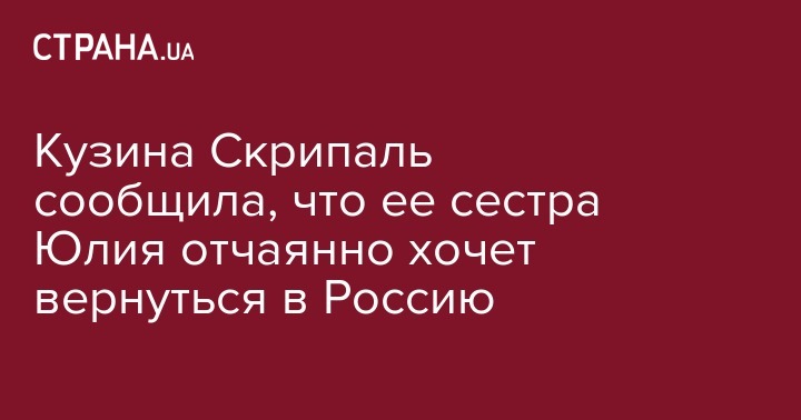 Двоюродная сестра отравленной в Солсбери Юлии Скрипаль сообщила про "отчаянное" желание родственницы вернуться в Россию. Виктория Скрипаль давно хочет попасть на встречу с выздоравливающей сестрой, но власти Великобритании не дали ей визу.