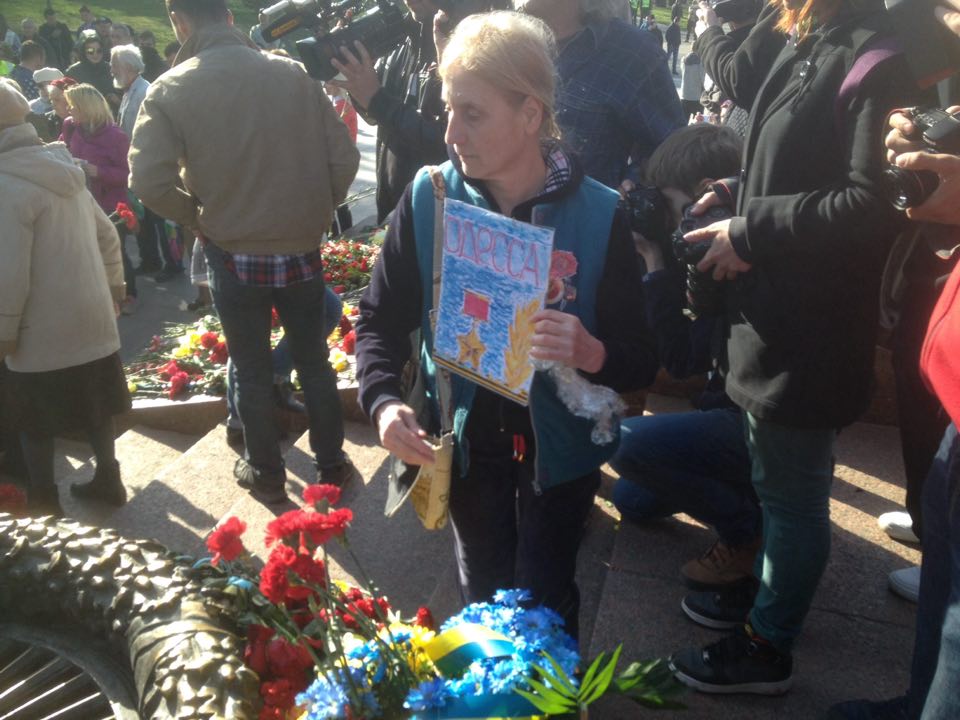 Затем к Вечному огню подошла группа из нескольких десятков просоветски настроенных пожилых людей и начали проводить митинг. Администрация мемориала, которая организовывала мероприятие, в ответ включила через динамики гимн Украины и поставила его на повтор. Таким образом заглушая весь митинг.