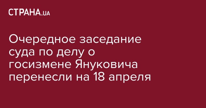 В следующую среду, 18 апреля, Оболонский районный суд Киева продолжит заседание по делу о государственной измене экс-президента Украины Виктора Януковича. Такое решение огласил председательствующий судья Владислав Девятко.