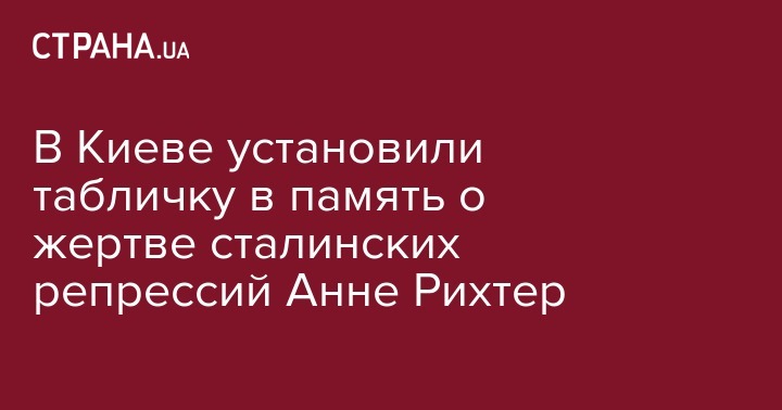 В Киеве установили табличку в память о жертве сталинских репрессий Анне Рихтер