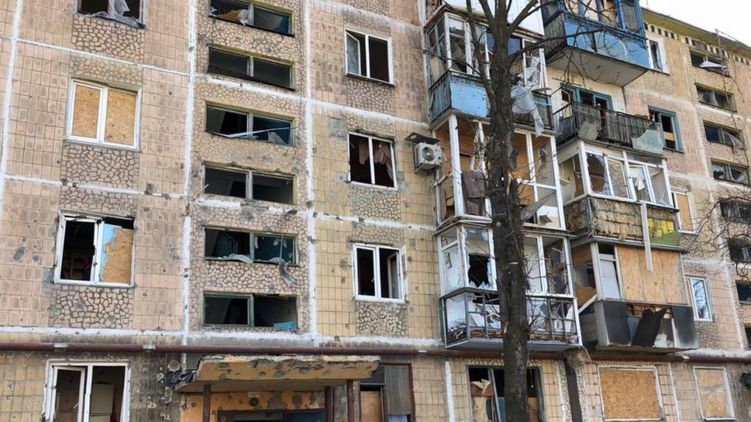 Местная "администрация" опубликовала фото повреждений домов в Куйбышевском районе Донецка.