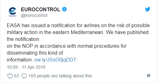 Ранее сообщалось, что Европейское агентство по безопасности полетов (EASA) рекомендовало всем авиакомпаниям усилить контроль за полетами в Восточном Средиземноморье в течение следующих 72 часов (срок истекает 13 апреля).