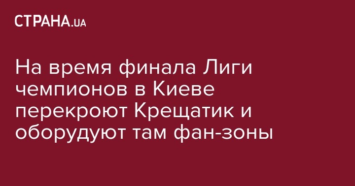 В Киеве с 24 по 27 мая на Крещатике перекроют участок от ул. Хмельницкого до ул. Архитектора Городецкого и оборудуют там фан-зону на время финала Лиги чемпионов УЕФА.