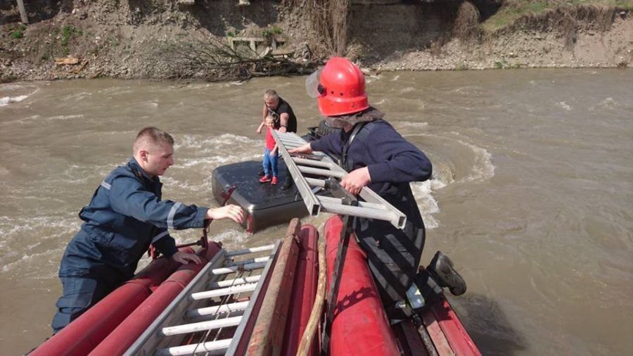 Отец и сын спасались на крыше внедорожника посреди бурной реки на Закарпатье