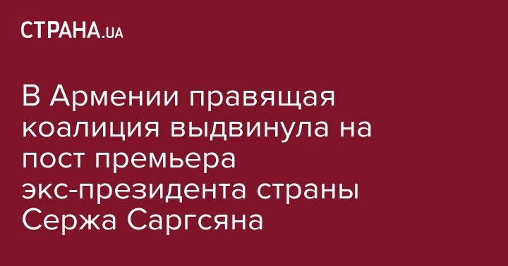 В Армении входящие в правящую коалицию Республиканская партия Армении и партия Дашнакцутюн выдвинули на пост премьер-министра страны кандидатуру бывшего главы государства Сержа Саргсяна. Об этом сообщает РИА Новости.