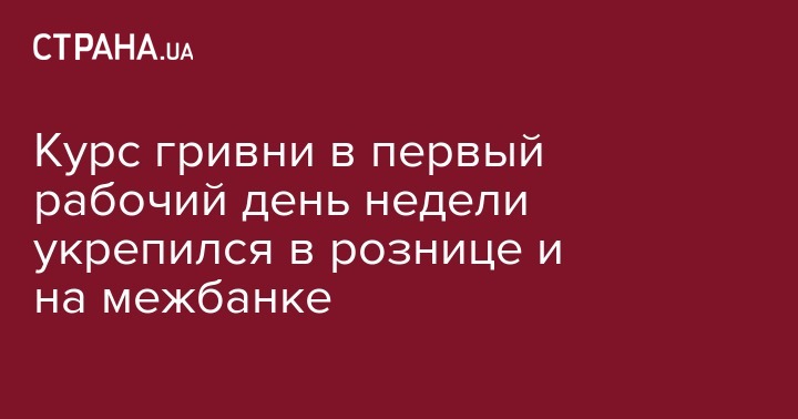 Курс гривни в первый рабочий день недели укрепился в рознице и на межбанке