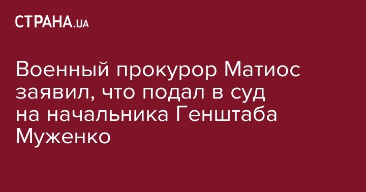 Заместитель генпрокурора - главный военный прокурор Анатолий Матиос заявил, что подал в суд на начальника Генштаба Виктора Муженко.