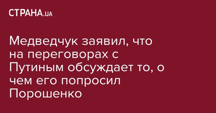 Лидер общественного движения "Украинский выбор - право народа" Виктор Медведчук сообщил, что на переговорах с Владимиром Путиным обсуждает вопросы, о которых его попросил Петр Порошенко.