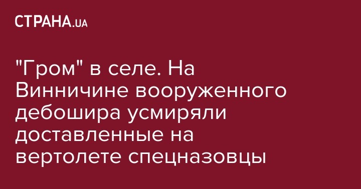 В Винницкой области для обезвреживания вооруженного пьяного дебошира была объявлена спецоперация "Гром", а к месту ЧП на вертолете доставили спецназовцев.