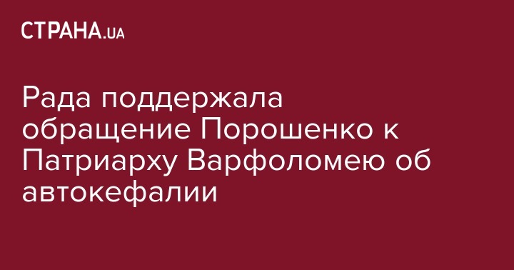 Рада поддержала обращение Порошенко к Патриарху Варфоломею об автокефалии
