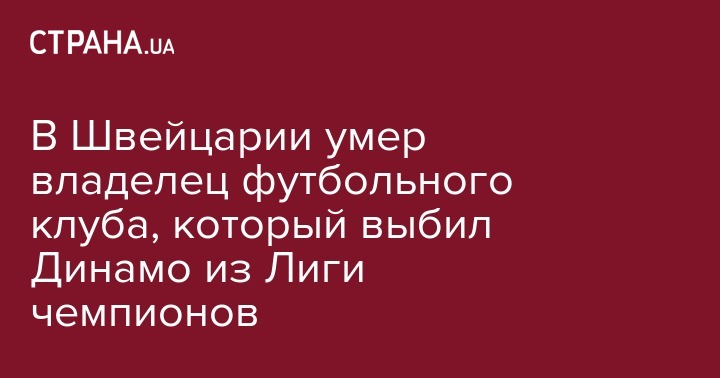 Вчера, 18 апреля, в Швейцарии скончался швейцарский бизнесмен Энди Рис, владелец велокоманды BMC Racing и футбольного клуба Янг Бойз, который выбил киевское Динамо из Лиги чемпионов в этом сезоне.