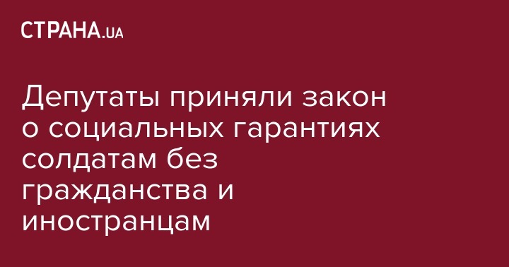 Соответствующий Закон "О внесении изменений в ст. 21-4 Закона Украины "О воинской обязанности и военной службе "(относительно усовершенствования отдельных вопросов выплаты одноразовой денежной помощи в случае гибели (смерти), инвалидности или частичной утраты трудоспособности без установления инвалидности иностранцев или лиц без гражданства, которые проходят военную службу в Вооруженных Силах Украины)» (проект № 6689) принят Верховной Радой 19 апреля.