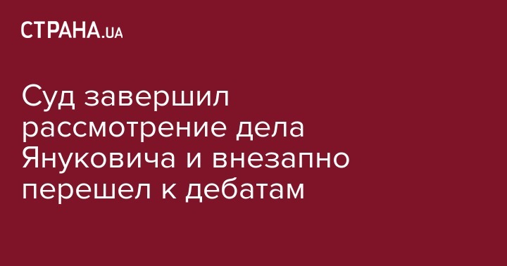 Оболонский районный суд Киева завершил рассмотрение и перешел к судебным дебатам по делу бывшего Президента Виктора Януковича, обвиняемого в госизмене. Об этом сказал председательствующий судья Владислав Девятко, передают Украинские Новости.