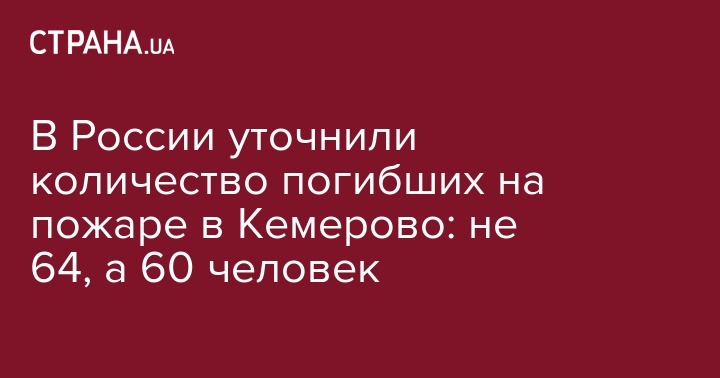 Следственный комитет России назвал окончательное число погибших при пожаре в ТРЦ "Зимняя вишня" в Кемерово. Окончательное число погибших при пожаре - 60 человек.