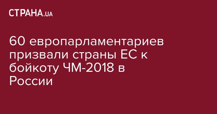 60 членов Европейского парламента призвали страны-члены ЕС к политическому бойкоту нынешнего Чемпионата мира по футболу в России. Соответствующее обращение группы европарламентариев обнародовали в пятницу, 20 апреля, передает DW.
