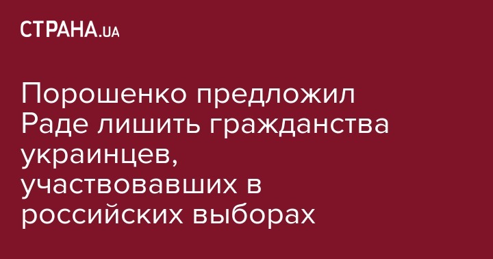 Президент Петр Порошенко предлагает Верховной Раде разрешить прекращение гражданства Украины тех жителей аннексированного Россией Крыма, которые приняли участие в российских выборах. Об этом говорится в законопроекте №8297, зарегистрированном в Раде 19 апреля и обнародованном в пятницу, передают "Украинские новости".