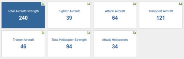 В рейтинге указываетя, что у Украины есть истребители, штурмовики, бомбардировщики, транспортные, учебно-тренировочные самолеты и вертолеты.