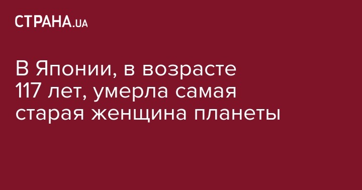 Долгожительница умерла в больнице поселка Кикай префектуры Кагосима, куда ее госпитализировали еще в январе этого года.