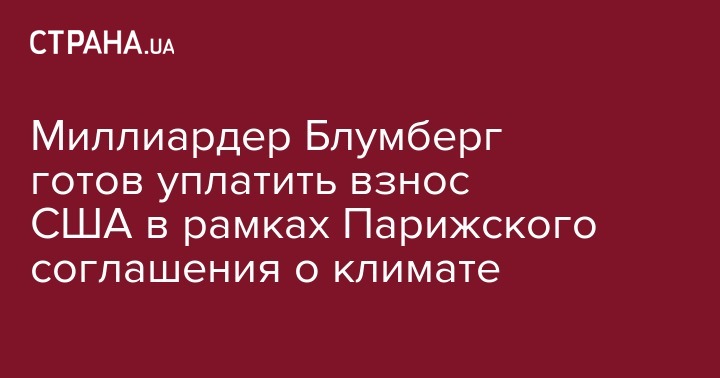 Блумберг заявил, что надеется на то, что США вернутся к Парижскому соглашению, а пока он чувствует ответственность за взятые обязательства, поэтому готов оплатить американский взнос.