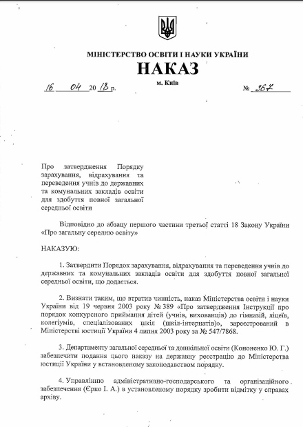 3) оригинал или копия соответствующего документа об образовании (кроме учеников первого и второго классов): табель учебных достижений за соответствующий класс, свидетельство, другой документ, подтверждающий получение образования.