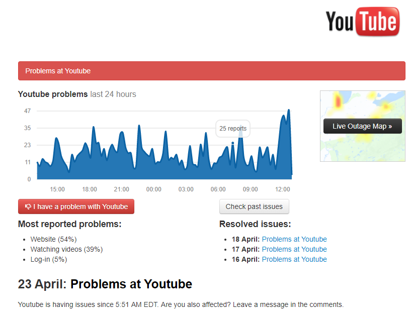 В России пользователи жалуются на проблемы с доступом к YouTube. Связаны ли проблемы с доступом с блокировкой Telegram, пока неизвестно. Об этом сообщает DownDetector.
