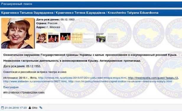 Звезда сериала "Папины дочки" Андрей Леонов и актрисы из "Сватов" Олеся Железняк и Татьяна Кравченко попали в черный список сайта "Миротворец".