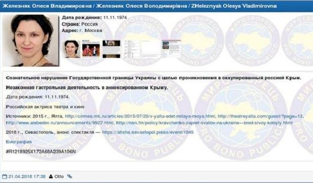 Как отмечается на сайте, причиной стало незаконное пересечение границы Крыма - через Россию и в обход украинского законодательства.