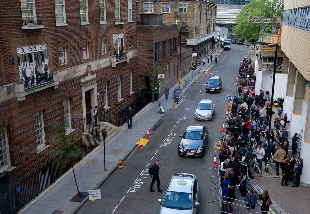 Журналист Бен Тавенер: "Мы (и сотни других журналистов!) ждём у больницы Сент-Мери на западе Лондона вестей о новом королевском младенце".