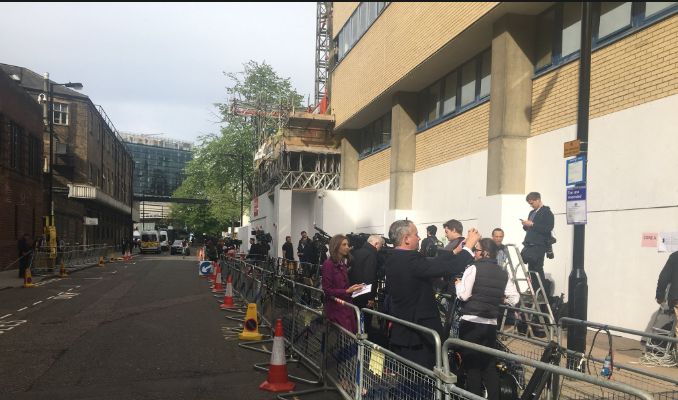 Журналистка BBC Фелисити Бейкер показала, как ее коллега наблюдает за прямой трансляцией с камеры возле больницы, где рожала герцогиня Кембриджская.