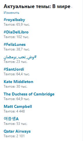 Кроме того, в Twitter стал самым популярным хештег #royalbaby, также в десятке еще два хештега, которые относятся к британской королевской семье: "Кейт Миддлтон" и "герцогиня Кембриджская".