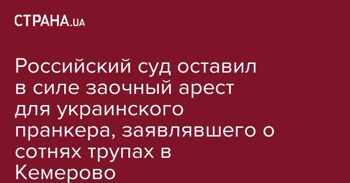 Мосгорсуд признал заочный арест украинского пранкера Евгения Вольнова, распространявшего слухи о сотнях трупах на пожаре в Кемерово, законным.