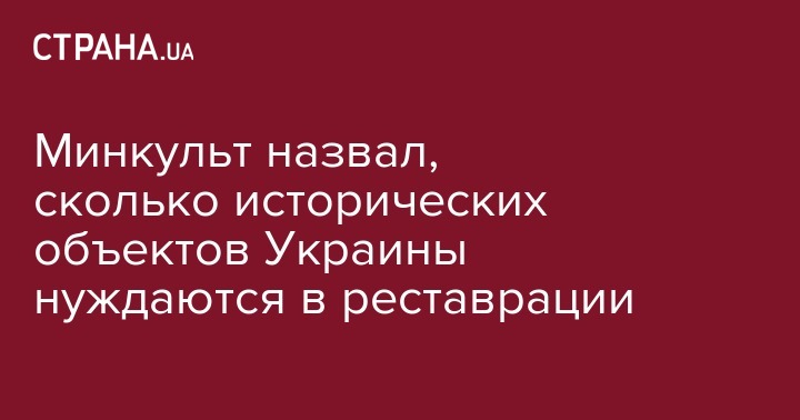 В Украине находится 129 779 объектов культурного наследия. Из них чуть более 8 тыс. требуют проведения ремонтно-реставрационных работ.